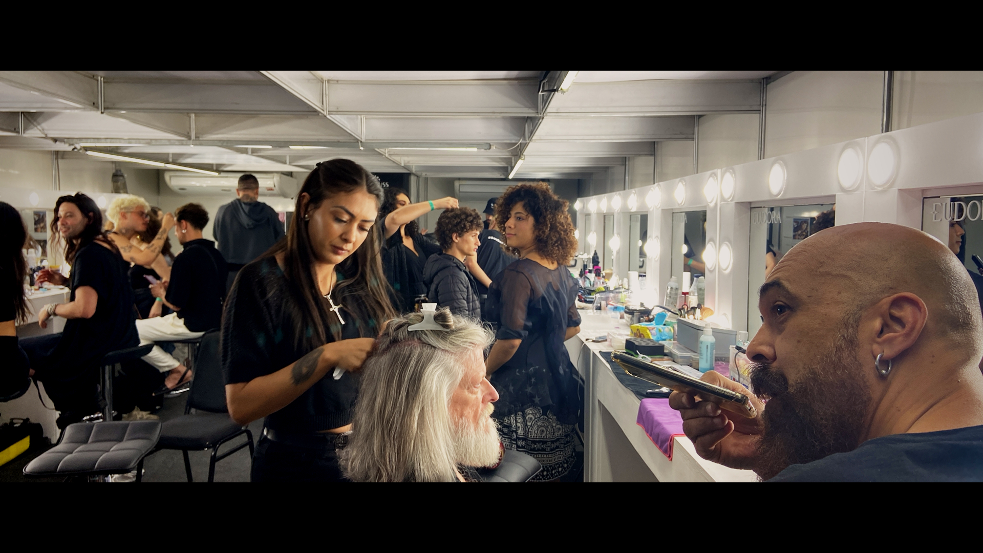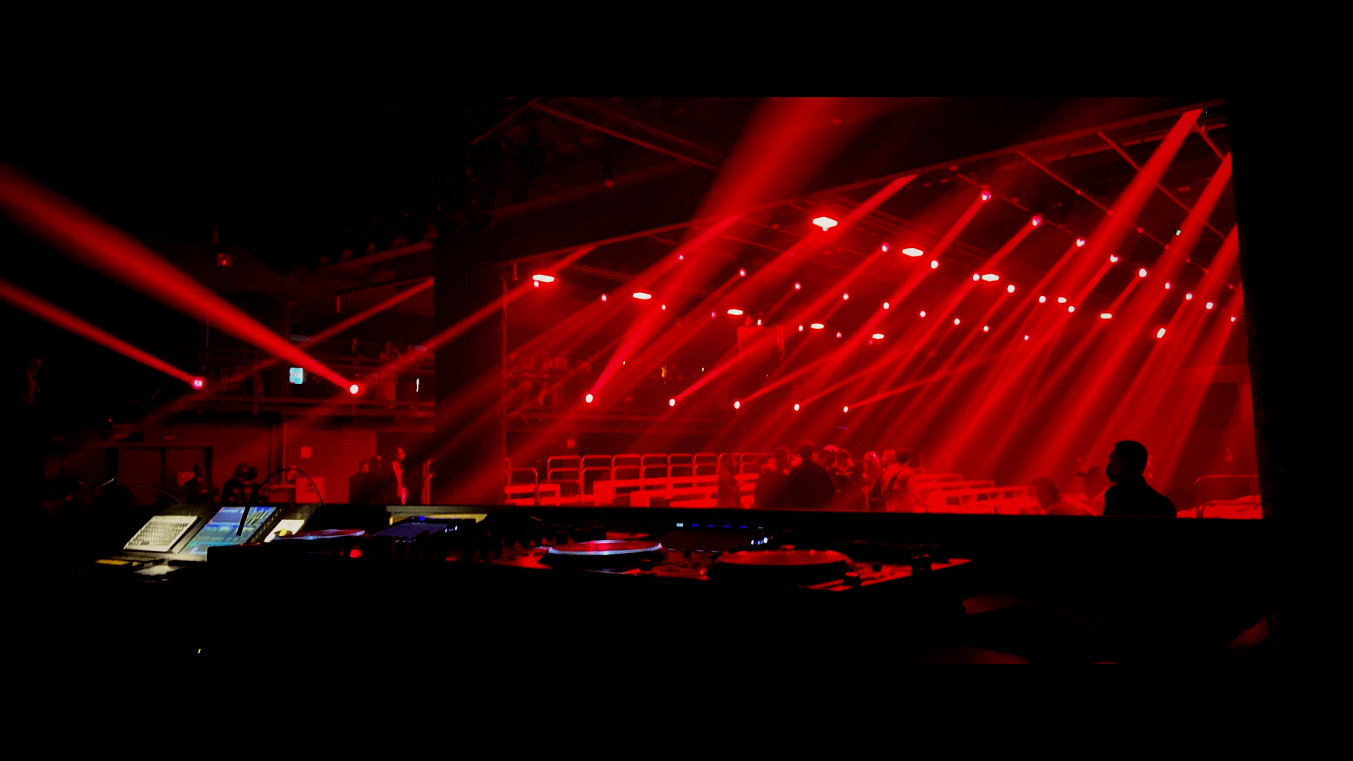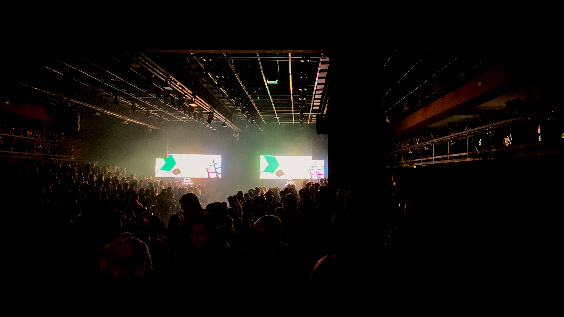 Tríptico: painéis de LED_ 13x4m. Porção central coincidente com passarela.